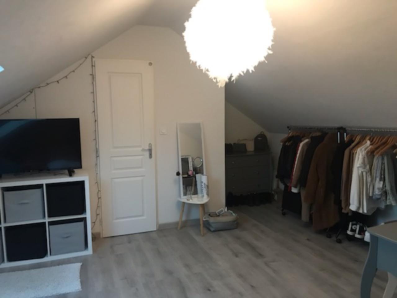 Cet appartement sous les toits, vous offre une agréable pièce de vie avec cuisine équipée ouverte, un WC séparé, une salle d'eau, et deux chambres avec placards.